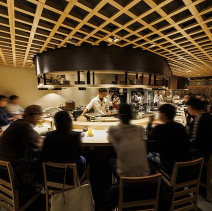 デザイナーが手掛けた美しい曲線のカウンター席は、デートやお一人様でのご利用に最適です◎職人の技を間近に眺めながら、ライブ感あふれるお食事をお楽しみいただけます♪