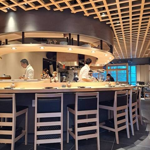 天神南駅から徒歩2分の「裏天神」に佇む、寿司居酒屋です。店内は落ち着いた空間が広がり、特に目を引くのはデザイナーが手掛けた美しい曲線のカウンター席◎お一人様やデートでのご利用に最適で食事を楽しみながら会話も弾みます。木の温もりを感じる和モダンな雰囲気の中、ゆったりとした大人の時間をお過ごしください♪